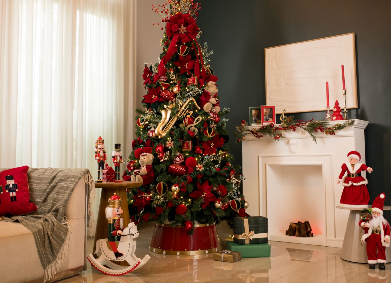 - Sinfonía de Navidad: La energía tradicional y festiva de la temporada cobra vida en esta colección inspirada en la orquesta de coros y villancicos. Predominan los instrumentos y notas musicales, tambores, trompetas, ángeles cantores, campanas, cascabeles, tamborileros y cascanueces con motivos musicales. Celebra lo clásico y lo festivo de la Navidad con una paleta de rojo borgoña, verde esmeralda, y dorado.