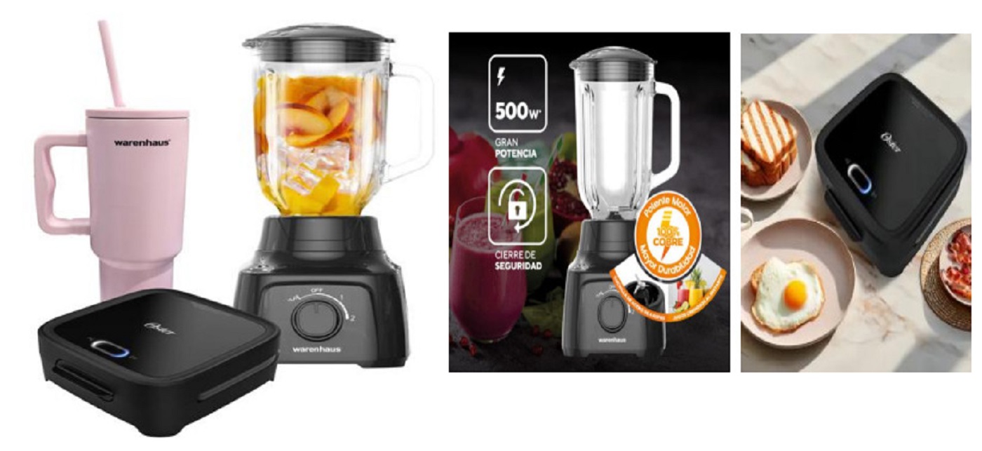 Pack mañanas saludables: Combo licuadora Warenhaus + sanduchera Oster + termo gratis por $69,99
