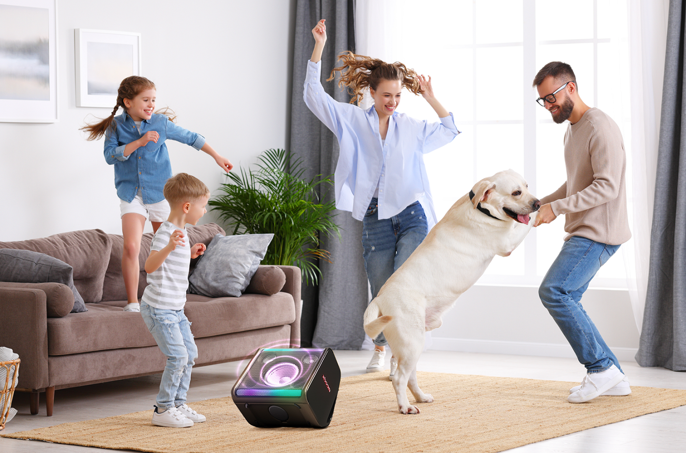 El aliado perfecto para fiestas en casa o reuniones con amigos. Con 120 W de potencia, batería de hasta 12 horas y resistencia a salpicaduras de agua, este parlante ofrece un sonido fuerte y envolvente que convierte cualquier espacio en una verdadera pista de baile. Incorpora un woofer de 6.5 pulgadas y dos rangos medios de 2.5 pulgadas, que permiten disfrutar de graves profundos, voces claras y una experiencia sonora equilibrada.