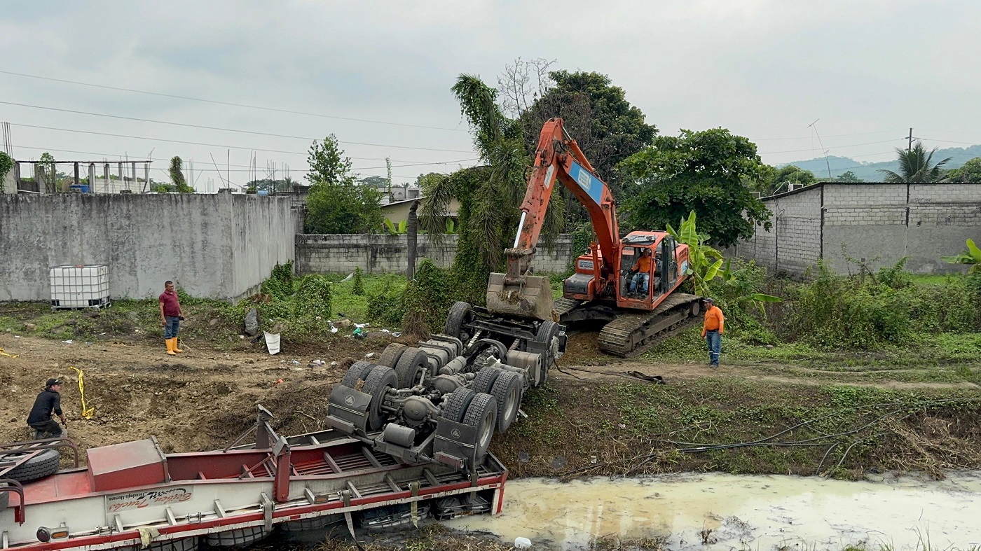 Técnicos del Gobierno Provincial permanecen con maquinaria en el punto del siniestro, hasta retirar completamente el camión accidentado. Al momento, las acciones buscan evitar que continúe el flujo de la goma derramada. “Va a ser tratado y va a ser remediado, buscando las medidas adecuadas. Al momento, lo que hemos hecho es aplicar un plan de contingencia inmediata”, ratificó Jácome.