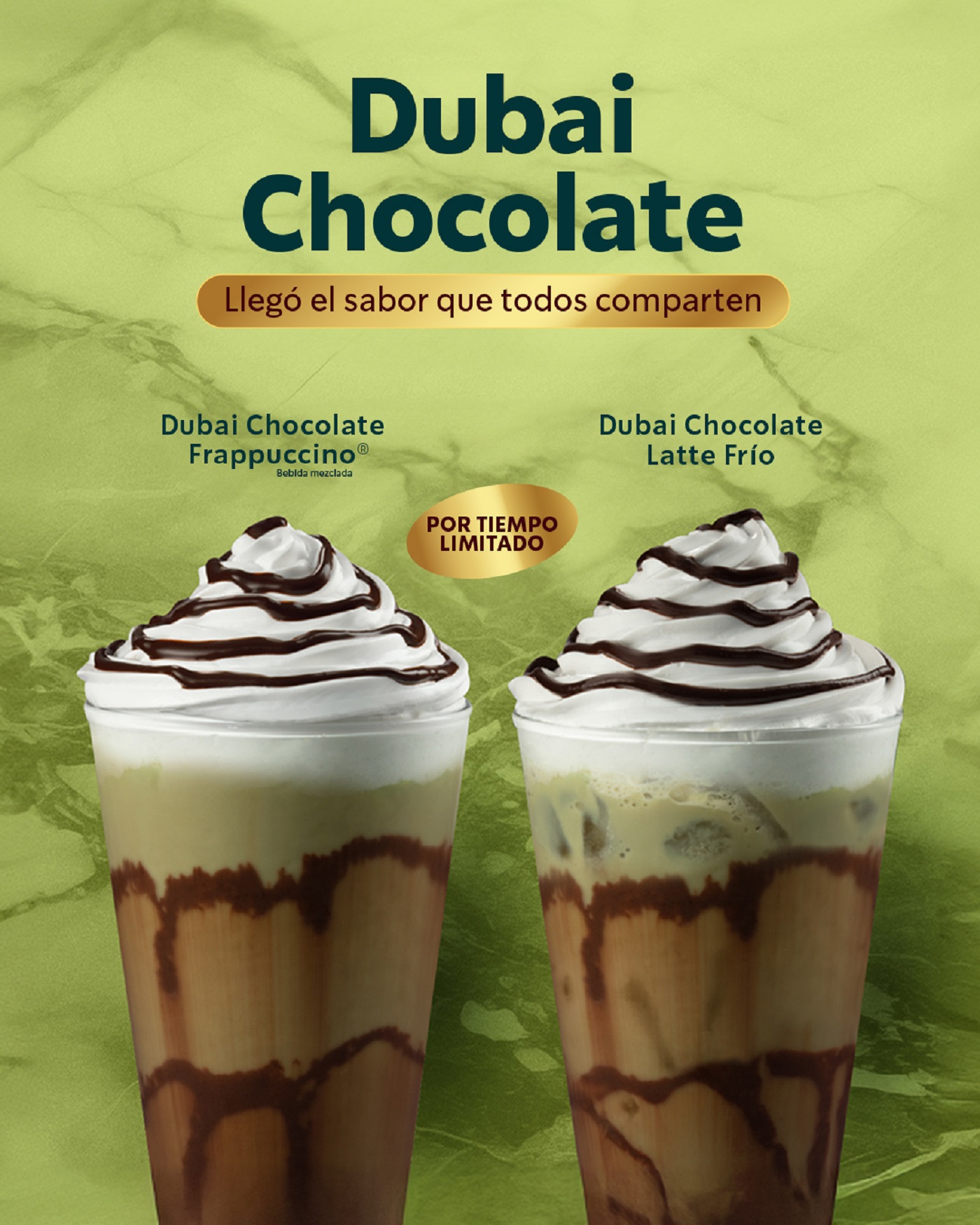 Como oferta especial, Starbucks® presenta también Chocolate Dubai, una bebida de edición limitada inspirada en las tendencias gastronómicas mundiales. Al combinar el delicado sabor del pistacho con el toque cremoso del chocolate, ofrece una experiencia de lujo. Disponible como Frappuccino® Blended Beverage o como Latte frío o caliente, está pensada para disfrutarla a cualquier hora del día, convirtiendo cada sorbo en un momento único y especial, y estará disponible hasta el 31 de marzo.