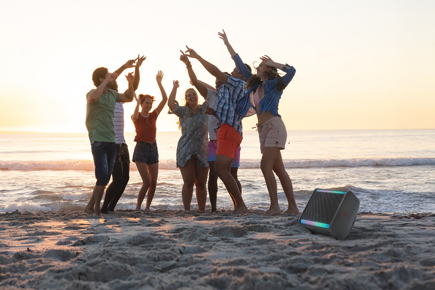 El altavoz portátil combina 120 W de sonido, inteligencia artificial y funciones de karaoke y DJ para animar cada encuentro al aire libre